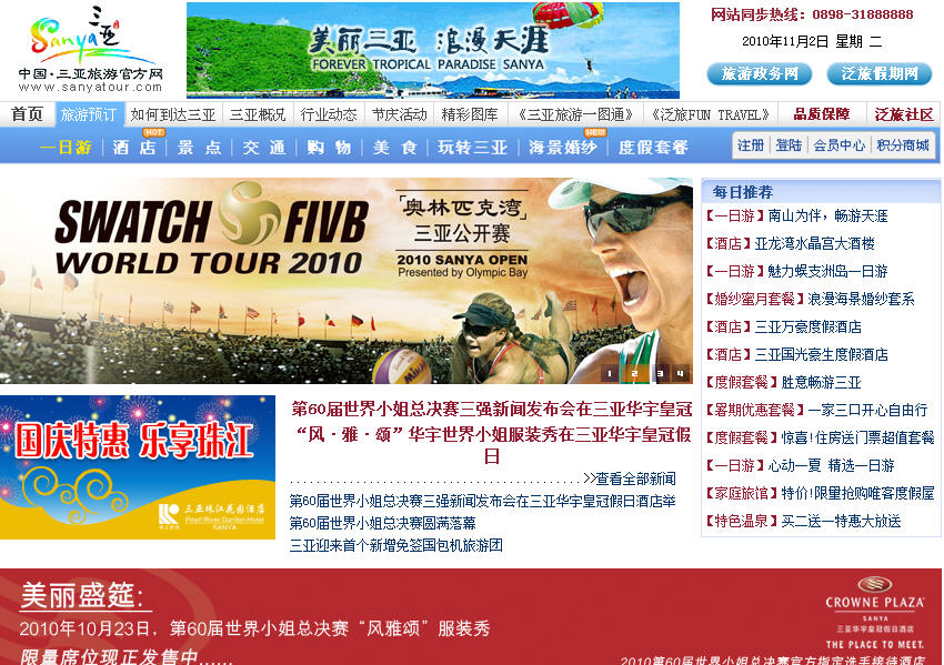 三亞旅游在線是三亞較早較專業(yè)的優(yōu)秀旅游網(wǎng)站平臺,提供三亞旅游咨詢、海南三亞酒店、家庭旅館的預(yù)定,提供三亞機票、三亞高爾夫、三亞景點門票、自駕車的預(yù)定、三亞自由等服務(wù).