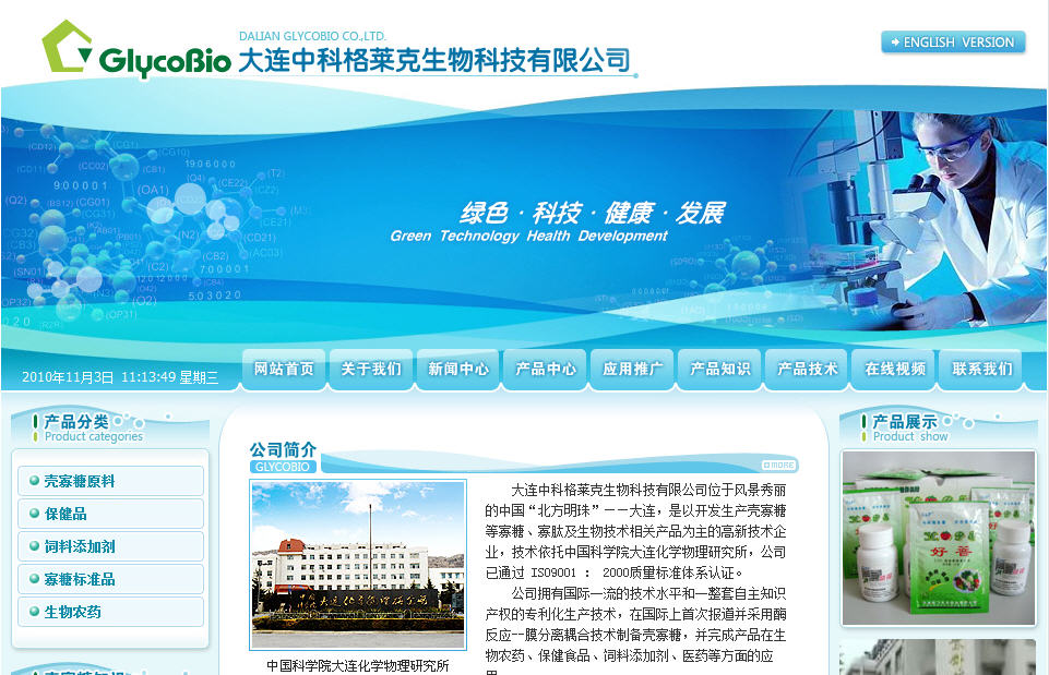 大連中科格萊克生物科技有限公司位于風(fēng)景秀麗的中國(guó)“北方明珠”——大連,是以開(kāi)發(fā)生產(chǎn)殼寡糖等寡糖、寡肽及生物技術(shù)相關(guān)產(chǎn)品為主的高新技術(shù)企業(yè),技術(shù)依托中國(guó)科學(xué)院大連化學(xué)物理研究所,公司已通過(guò) ISO9001 : 2000質(zhì)量標(biāo)準(zhǔn)體系認(rèn)證.