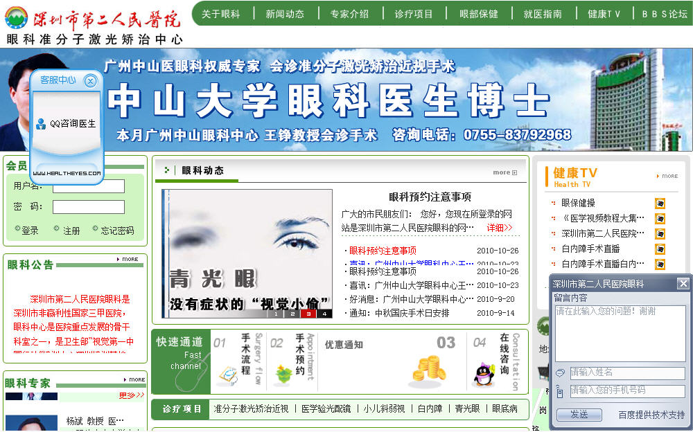 深圳市第二人民醫(yī)院眼科是深圳市非贏利性國家三甲醫(yī)院,眼科中心是醫(yī)院重點(diǎn)發(fā)展的骨干科室之一,是廣東省低視力康復(fù)技術(shù)指導(dǎo)中心深圳分站及衛(wèi)生部“視覺第一中國行動”培訓(xùn)中心深圳培訓(xùn)基地,包括兩個門診部、一個病區(qū)、一個準(zhǔn)分子激光治療中心。