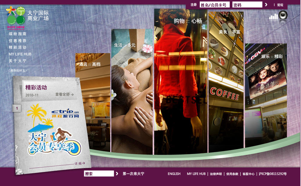 項(xiàng)目位于上海浦西南北中軸線 - 共和新路(南北高架) - 與大寧路交界。25萬平方米的總建筑面積由地面20萬平方米和地下5萬平方米組成。共有15棟錯(cuò)落有致的建筑、11個(gè)大小廣場和庭院、約2公里步行街和1,300個(gè)停車位。商業(yè)廣場具有8大功能:商務(wù)酒店、辦公樓、零售、餐飲、文化、娛樂、教育和城市生活配套設(shè)施等。