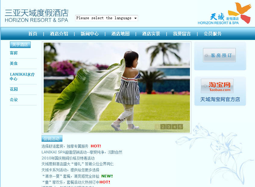 三亞天域度假酒店,位于風(fēng)景如畫的海南島三亞亞龍灣國(guó)家旅游度假區(qū),坐擁亞龍灣中心位置的最美麗海景。酒店一區(qū),1998年正式開業(yè),全新二區(qū)亦于2006年閃亮登場(chǎng),至此,天域度假酒店成為擁有客房數(shù)量最多的熱帶風(fēng)情度假酒店。十年天域,碧水藍(lán)天,于細(xì)浪白沙間追逐嬉戲;十年天域,椰韻花語(yǔ),多少浪漫童話在此上演; 承蒙您的支持與關(guān)愛,天域人在此謹(jǐn)表示最衷心的感謝.