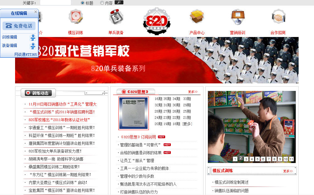 八二零現(xiàn)代營銷軍校成立于2004年,是中國第一家專注于銷售人員職業(yè)化訓(xùn)練的專業(yè)機(jī)構(gòu),致力于為中國企業(yè)提供合格的銷售人員。