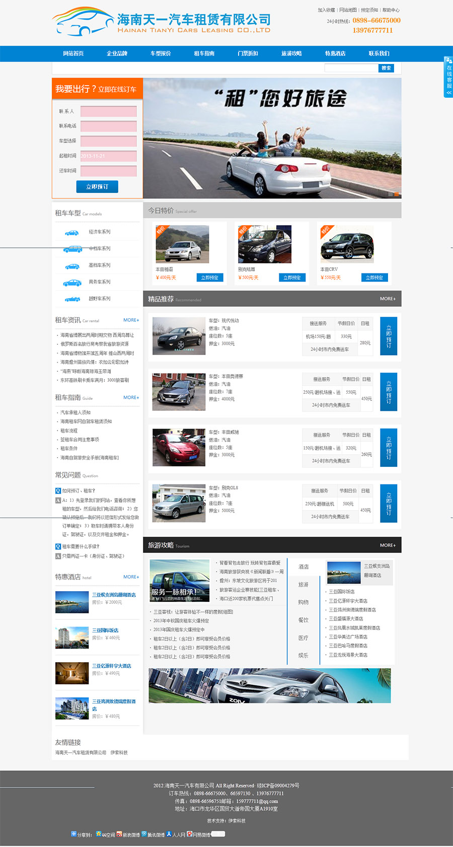 海南天一汽車租賃有限公司是經(jīng)海南省交通廳審核批準(zhǔn),2007年在海南省工商行政管理局依法注冊的從事汽車租賃服務(wù)的專業(yè)企業(yè)。是正規(guī)、專業(yè)的汽車租賃服務(wù)公司,注冊資金100萬.公司主要對社會各界需要商務(wù)用車的個人、企事業(yè)單位、團(tuán)體、賓館、商務(wù)公司、旅游公司等為服務(wù)對象。